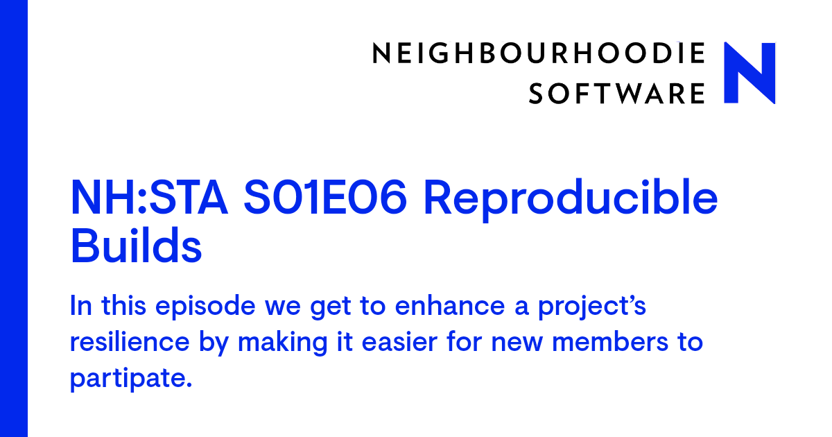 NH:STA S01E06 Reproducible Builds posted Wednesday, January 21, 2026 by The Neighbourhoodie Team AnnouncementNewsInterview